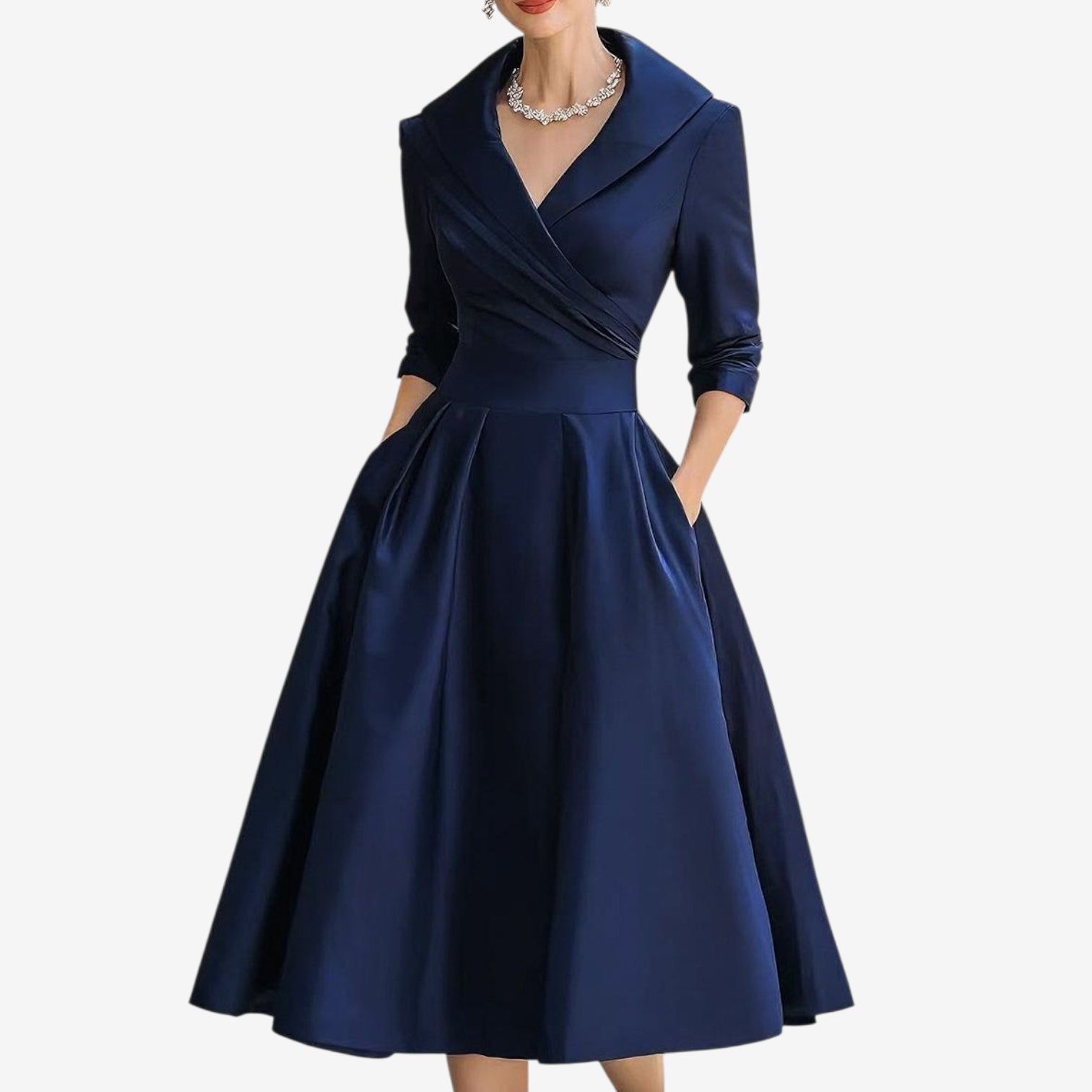 Incarnation d'un raffinement intemporel, cette robe réinvente l'élégance classique grâce à une coupe moderne et un design fluide. Confectionnée dans un tissu satiné haut de gamme, elle offre un drapé sublime tout en conservant une silhouette structurée et gracieuse. Le corsage ajusté et la jupe ample dessinent une silhouette empreinte de confiance et d'aisance. Proposée dans une palette de couleurs riches, elle se prête aussi bien aux réceptions de l'après-midi qu'aux soirées.
