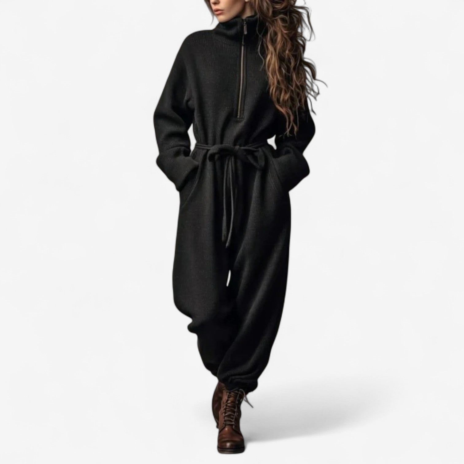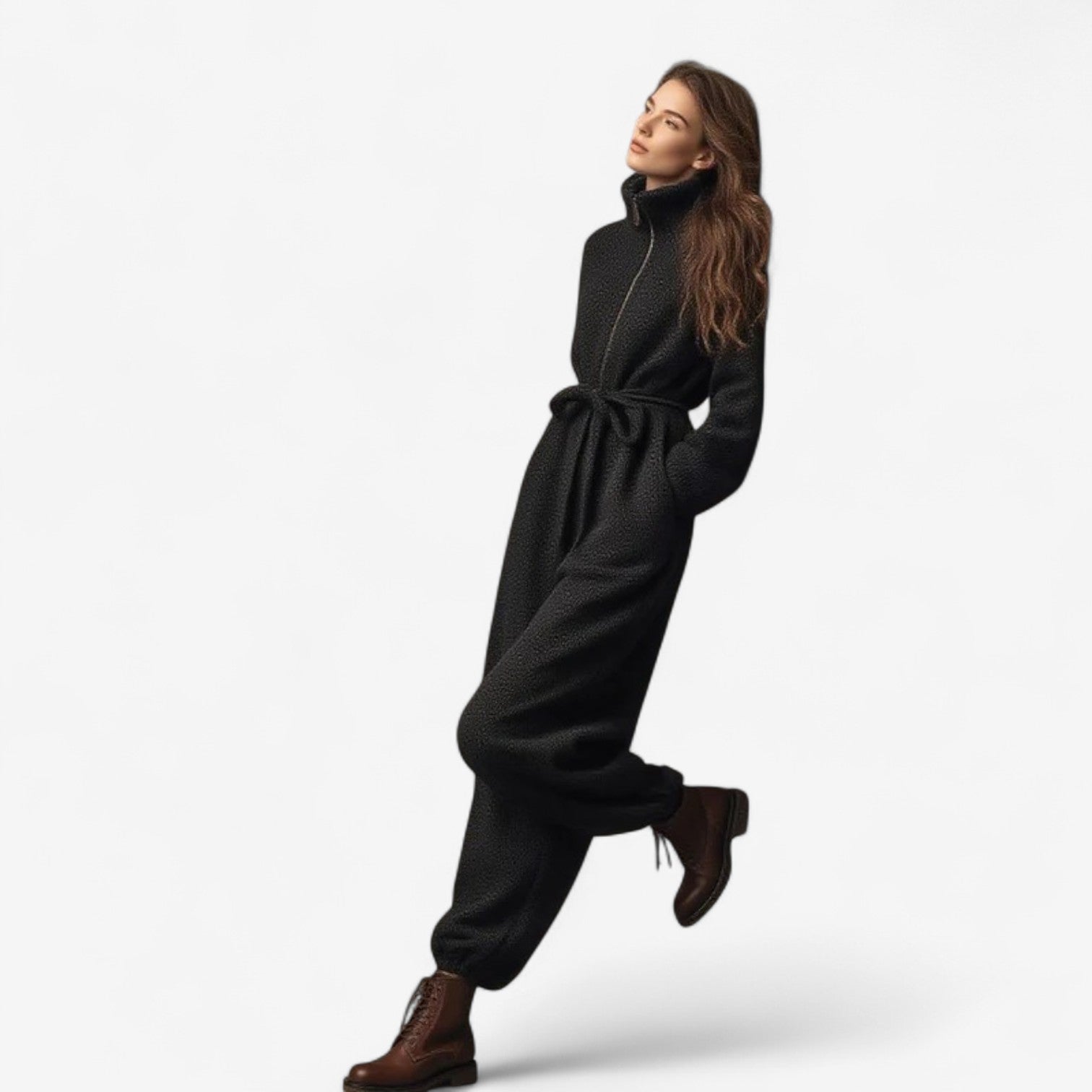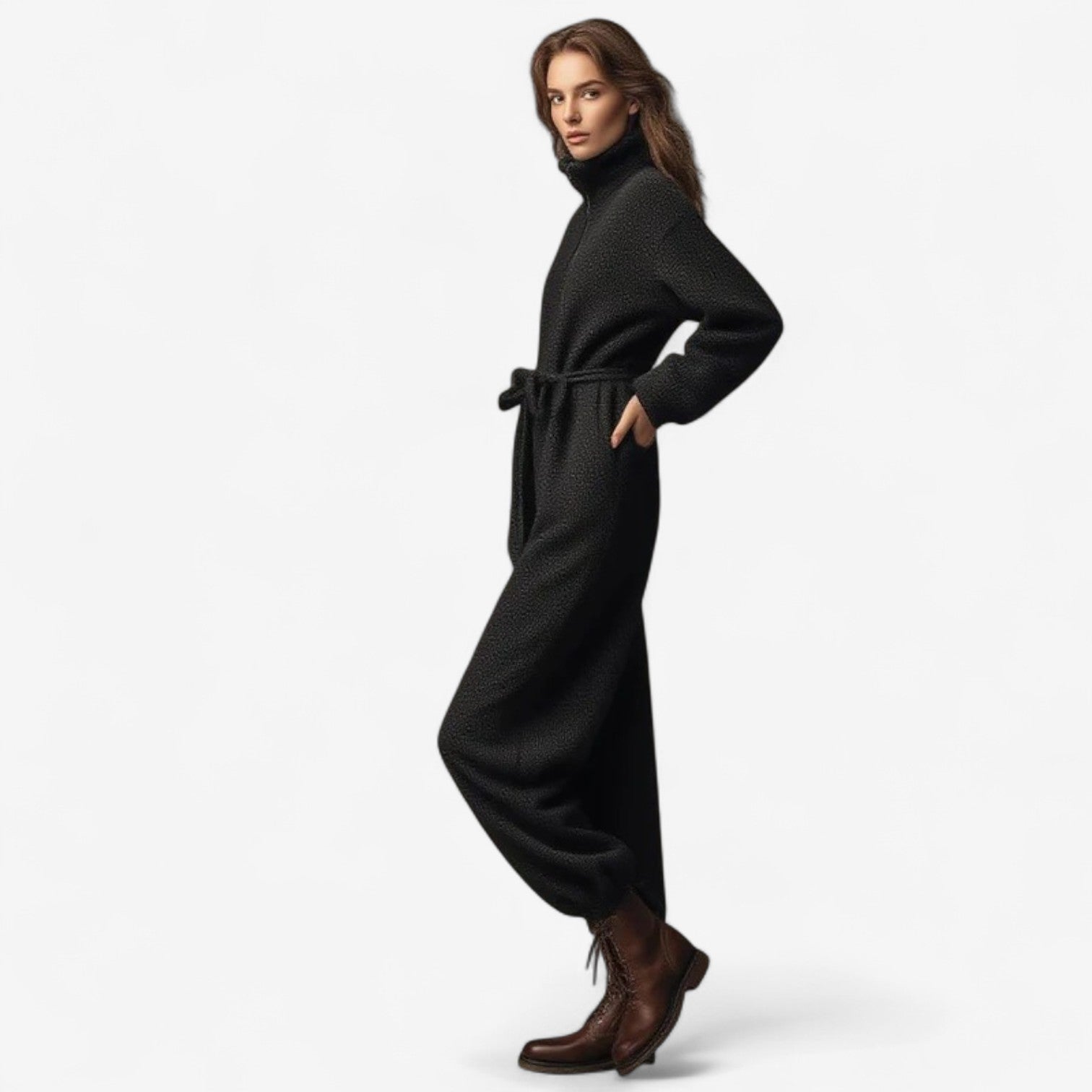 Hommage au raffinement contemporain, cette combinaison drapée se distingue par une élégance discrète et une grâce sculpturale. Confectionnée dans un tissu doux et haut de gamme, elle enveloppe le corps d'une fluidité naturelle, tandis que la taille marquée structure subtilement la silhouette. La coupe ample et le col montant évoquent une sophistication minimaliste. Pensée pour le confort et le charme, elle se porte aussi bien le jour que le soir avec une élégance intemporelle.