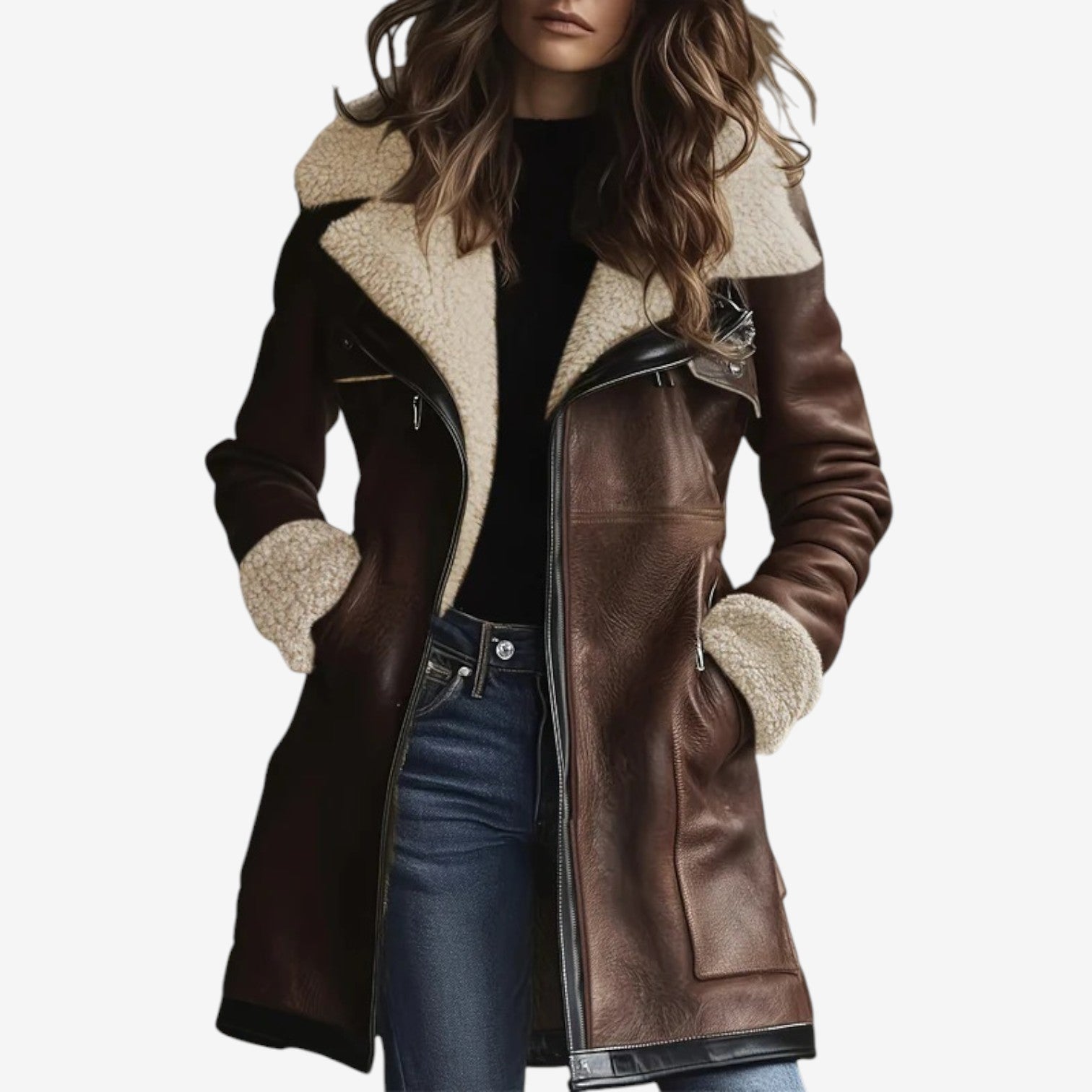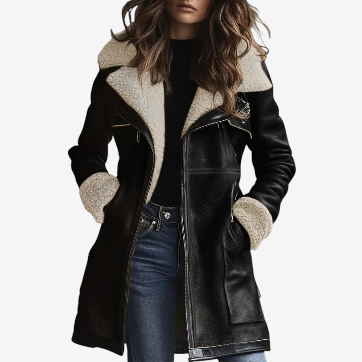 Un soupçon de charme vintage rencontre une sophistication moderne. Confectionné en cuir souple et doublé d'un intérieur moelleux, il enveloppe la silhouette d'une chaleur raffinée. Le contraste des textures évoque un charme intemporel, où une assurance affirmée se mêle à un luxe discret. Parfait pour les rues de la ville comme pour les escapades paisibles, il devient un compagnon idéal au fil des saisons.